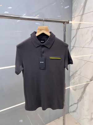 Hugo Bos s Grey Premium Imported Compact Yarn 240 GSM Interlock Fabric Polo Tshirt with Collar Design and Emboss Logo Pocket style 2512