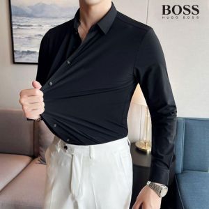 Hugo Bos s Black Premium 4way Stretchable Japanes Lycra Fabric Wrinkle Free Shirt with Brand Box 2444
